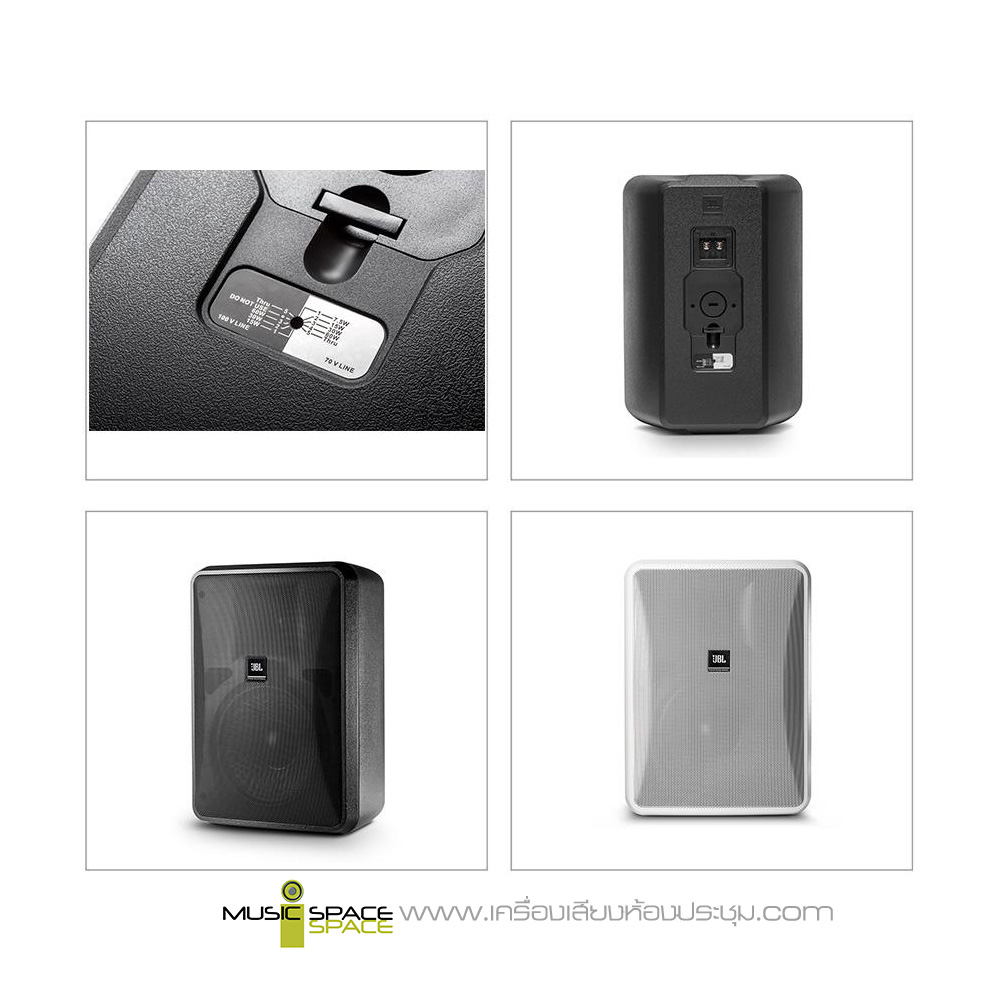 ตู้ลำโพงติดผนัง JBL Control 28-1L 2-way – passive ขนาดดอกลำโพง 8 นิ้ว woofer with woven fiberglass cone, เสียงแหลม 1 นิ้ว PEI diaphragm tweeter with fluid cooling, ทนกำลังขับ 120 Watt power handling (240 Watt program) 8 Ohm, ตอบสนองความถี่ 45 – 20000 Hz